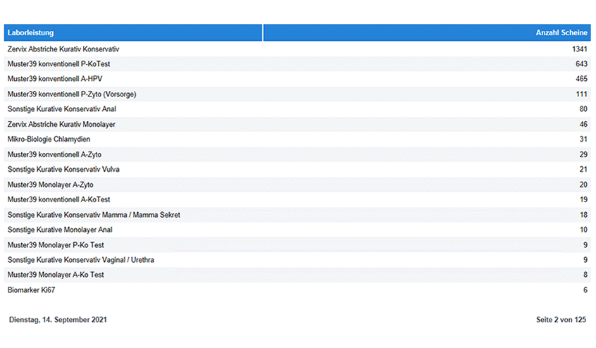 Anzahl Scheine je Laborleistung